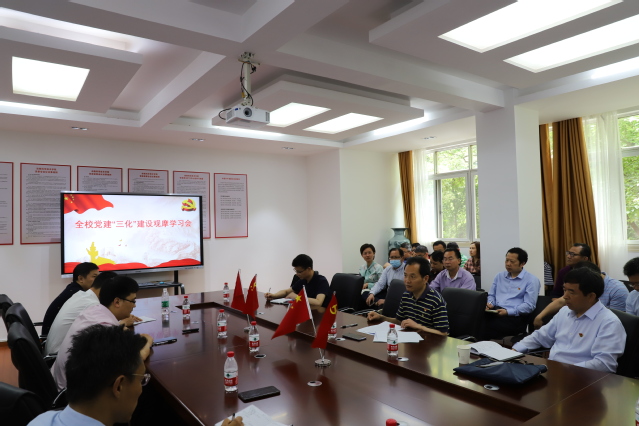 許斌華對學校前期黨建“三化”建設工作取得的成效給予了充分肯定,他指出,全省高校基層黨建“三化”建設觀摩推進會在我校召開以后,評價很高、反響很好、鼓舞很大,我們要以此次會議為新的起點,推動全校黨建“三化”建設面上全覆蓋、整體再提升。一是要認真學習。學理論,深入學習貫徹習近平總書記關于高校黨的建設、思想政治教育、意識形態、“三農”工作等作出的一系列重要論述;學規范,嚴格按照“四個方面定標準、六個方面立規范”的要求,逐條逐項去不斷熟悉和加深理解;學典型,學習借鑒試點單位的先進經驗和做法,確保建設過程中不走彎路、不做無用功。二是要務求實效。舉措要實,通過逐條梳理和列出問題清單和整改清單,以切實有效的舉措來推動黨組織全面進步、全面過硬;作風要實,結合黨史學習教育,深入調研,廣泛收集師生員工關切的“急難愁盼”問題,列出實事清單,逐項落實到位;責任要實,各級黨組織書記要切實履行第一責任人責任,親自想、親自抓、親自做、親自講,把管黨治黨責任壓緊壓實、層層傳導到位。三是要不斷創新。觀念要新,緊扣“立德樹人、強農興農”主線,強化黨建引領,推動黨建和業務工作深度融合,以高質量黨建推進學校事業高質量發展;方法要新,統籌推進黨建“三化”建設和“金扁擔”黨建品牌創建,確保兩項重點工作同向共行、同頻共振、同軸共轉;效果要新,找準自身定位、創新實踐做法、形成品牌特色,使其產生示范效應,具備推廣價值。