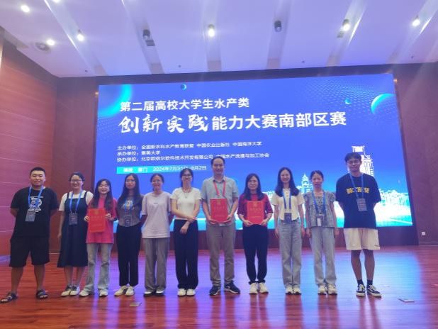 2024年7月31日—8月1日,全國第二屆高校大學生水產類創新實踐能力大賽南部區賽比賽在集美大學舉行,我院共三支隊伍參加比賽。經過激烈角逐,最終獲一等獎1項、二等獎2項, 4名教師獲“優秀指導教師”、2人獲”金牌裁判”, 江西農業大學榮獲“優秀組織獎”。一等獎隊伍將晉級全國總決賽。