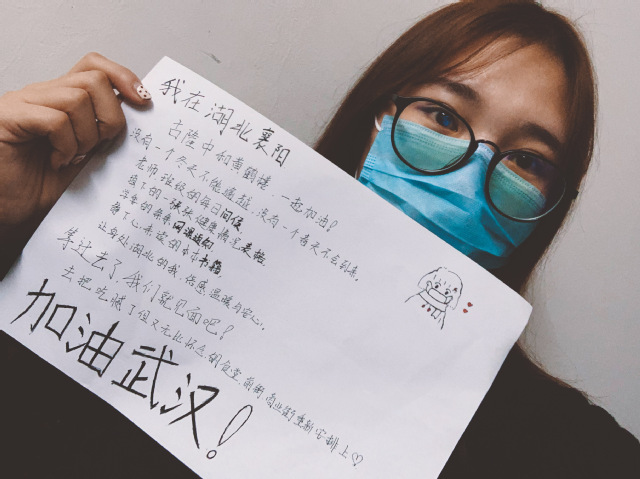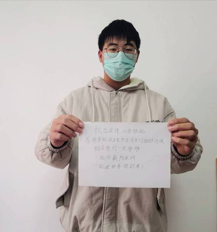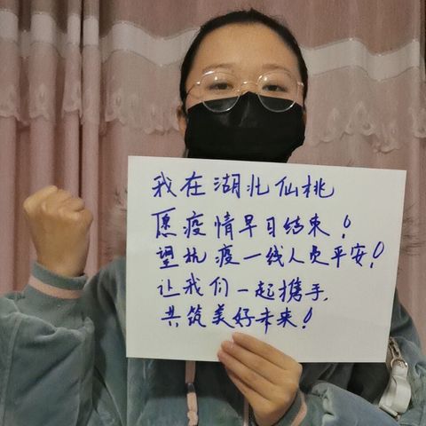 我是徐明航,我在湖北武漢,一切安好,我向學校和大家報平安!我正處在疫情的重災區(qū),我知道我的城市生病了,有病就能治,有黨中央的堅強領導和全國人民的大力支持,雖然目前疫情依舊嚴峻,但是我們都不懼怕,因為相信科學,相信一直奮斗在前線的白衣天使們!讓我們齊心協(xié)力、萬眾一心,打贏這場沒有硝煙的戰(zhàn)爭,一起迎接春天的到來!